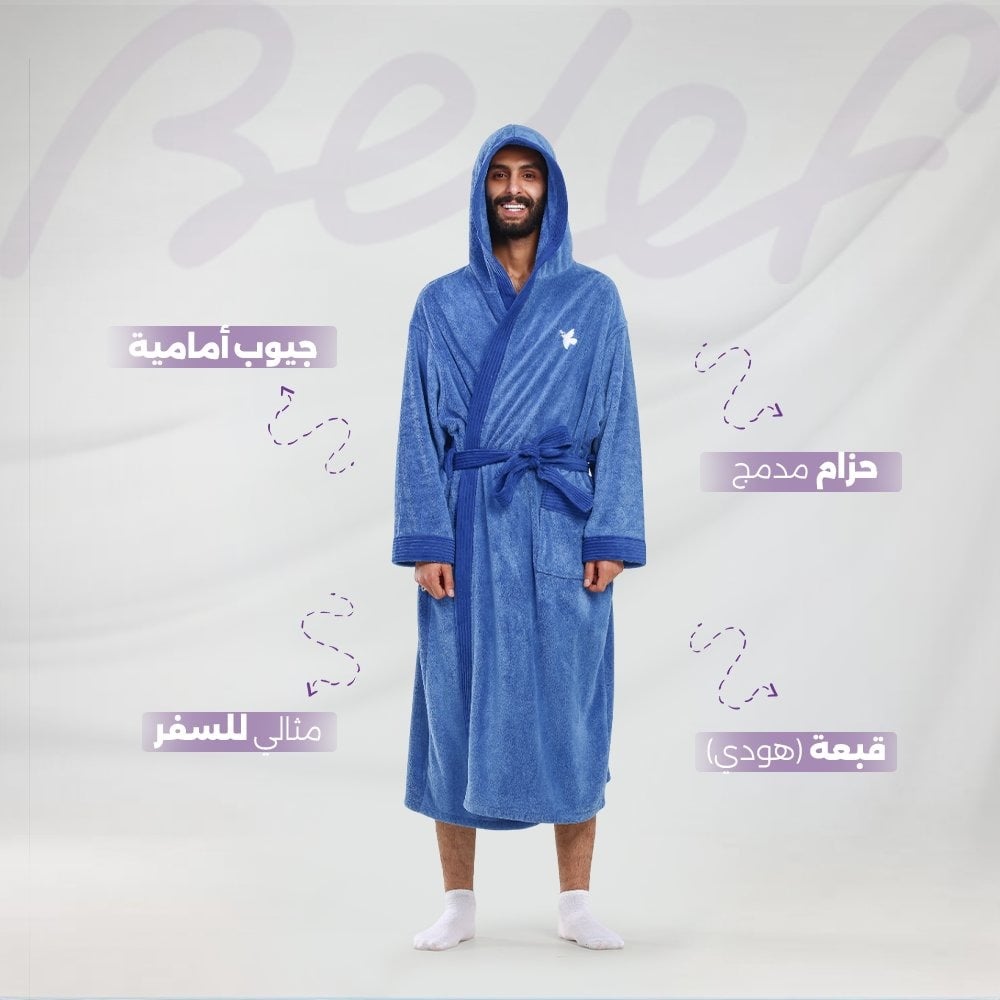 • المنتج: روب أزرق غامق مع هودي.